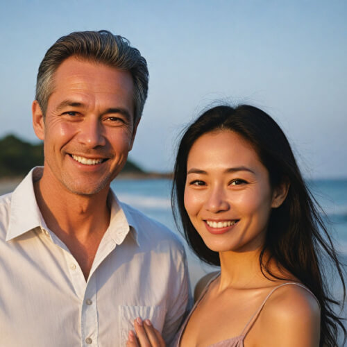 David, 58:David, 58: "After my divorce, I was skeptical about online dating, but Koreadates changed my mind. I met Mei through live chats and caught her attention with virtual gifts. Now, we’re excitedly planning our future together."